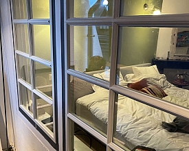 100 graden er onder en aan de bovenkant voel je er nagenoeg niks van! een heel bijzondere en overtuigende opstelling!